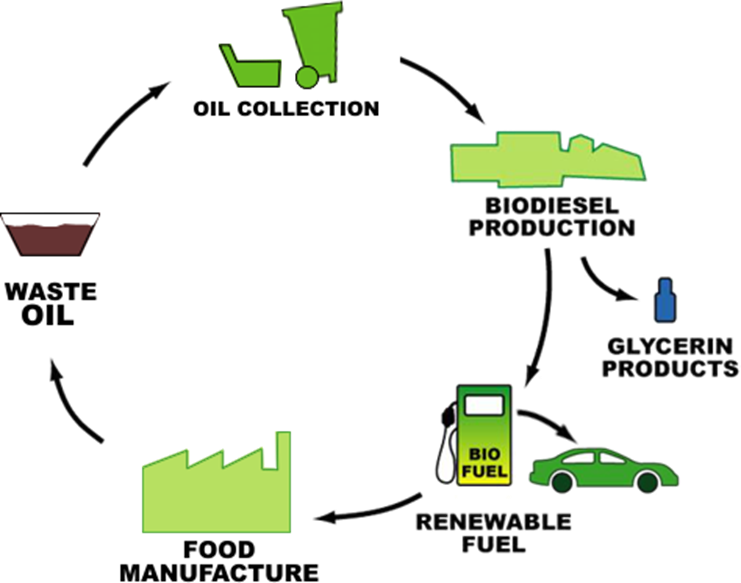 Vegetable Oil or Animal Fat (100 kg) + Methanol (10 kg) Glycerine (10 kg) + Biodiesel (100 kg).